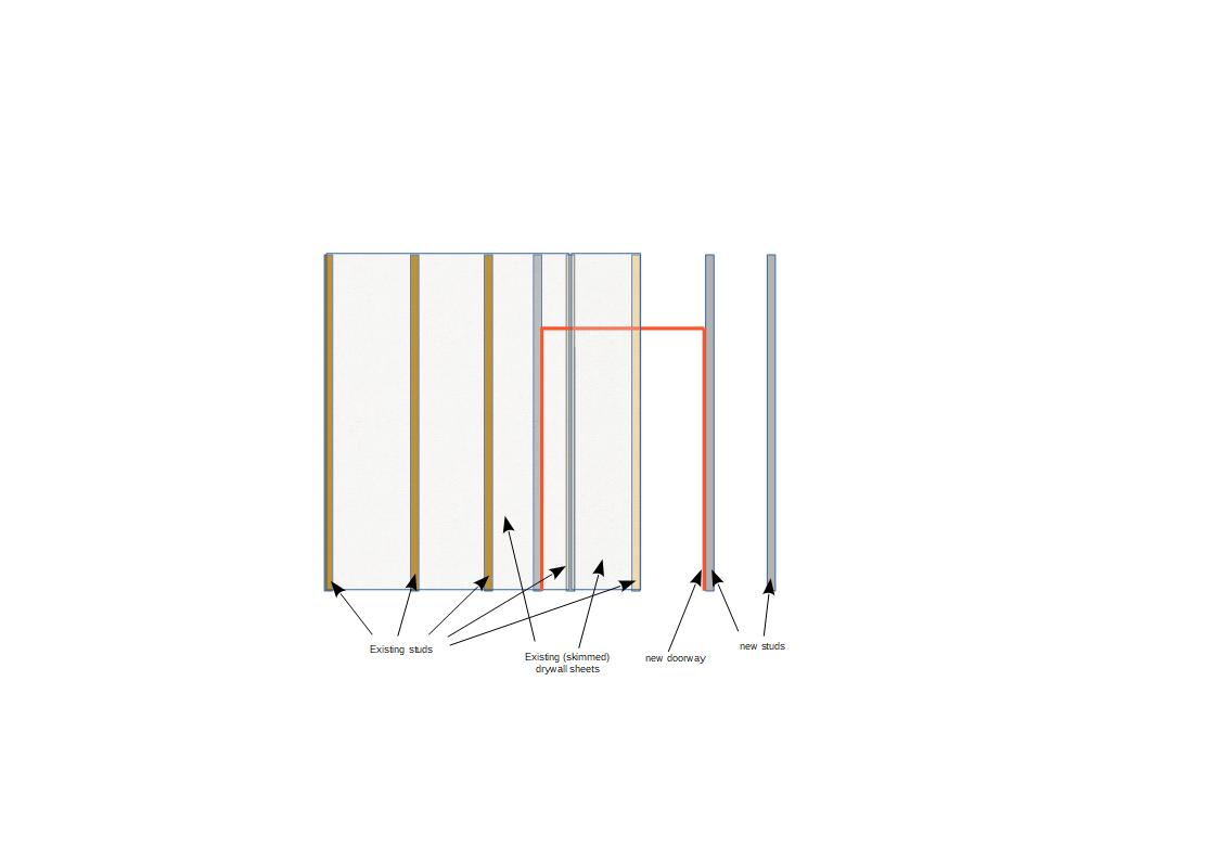 I am in the process of widening a room and moving the doorway. The position for the new doorway partly overlaps the existing stud wall and partly overlaps the new section of the wall (still to be constructed).