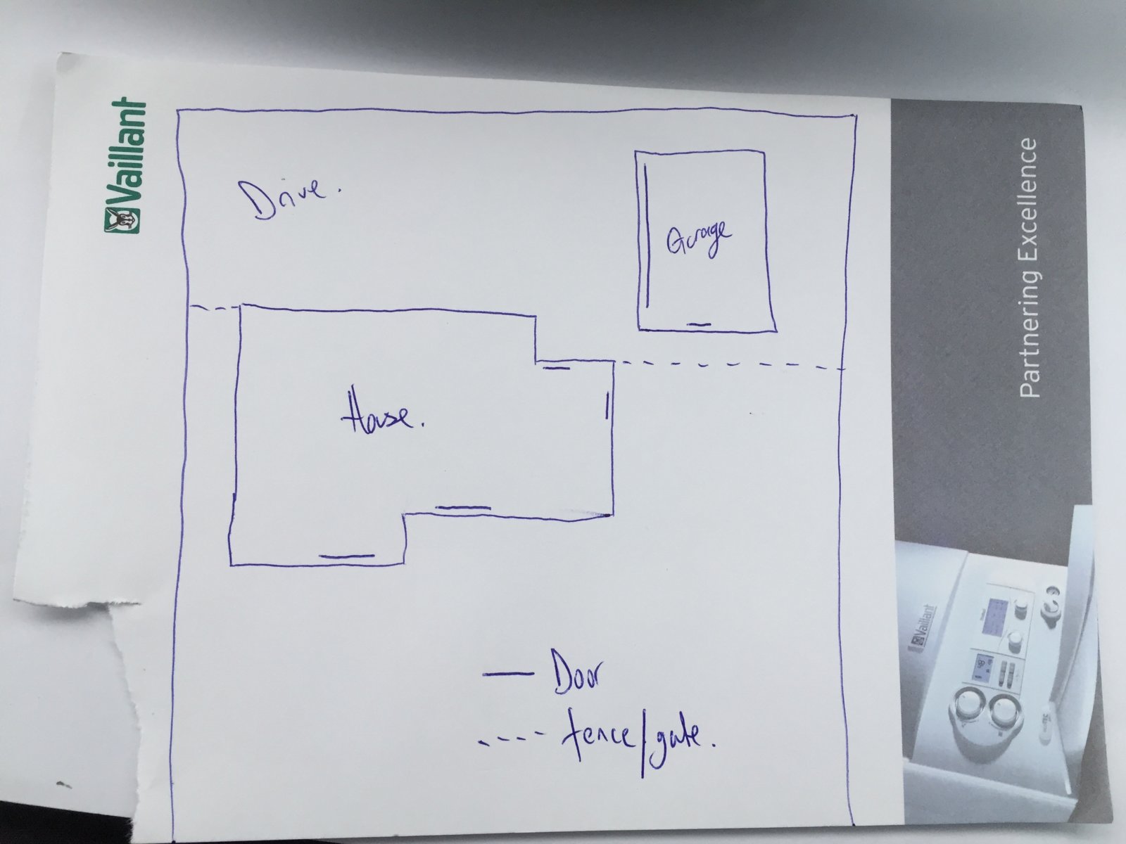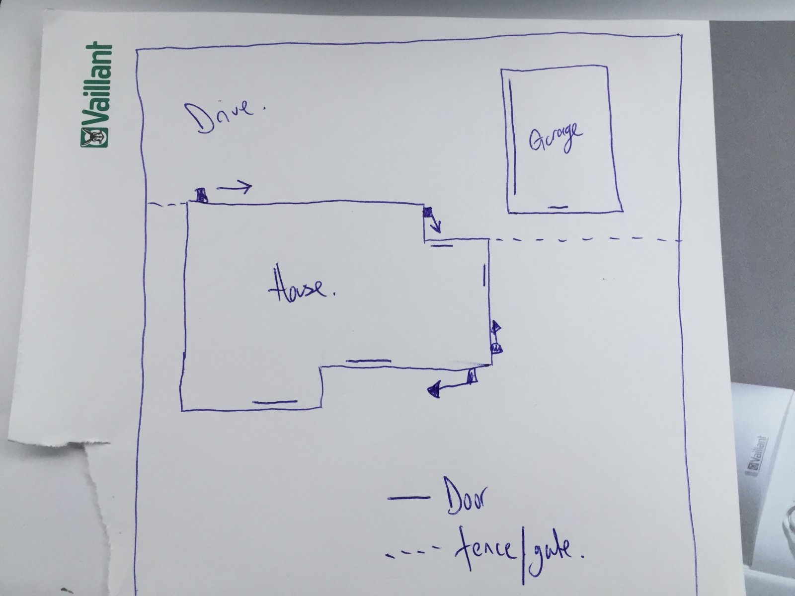 I have a 4 channel system and have a attached a rough plan of my property, doors are the solid lines. I’d ideally like to have one that captures the front door and Garage (up/over and side door) but I’m not sure this is possible.