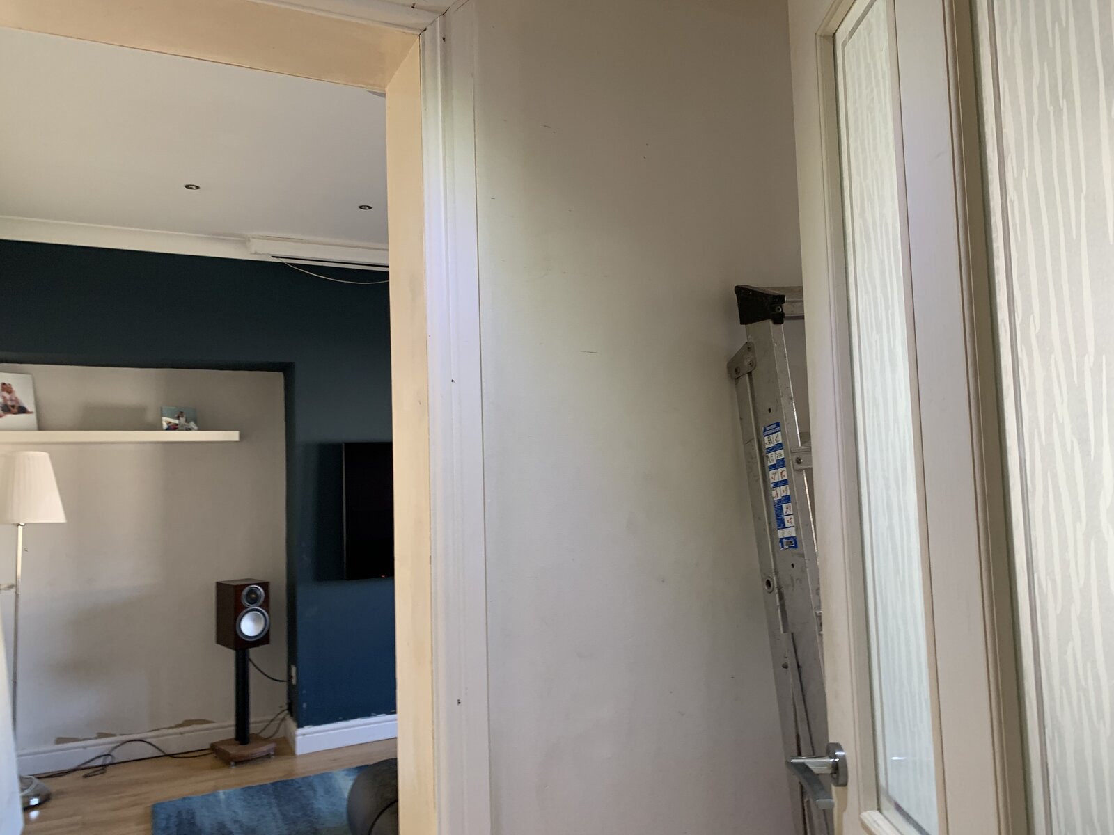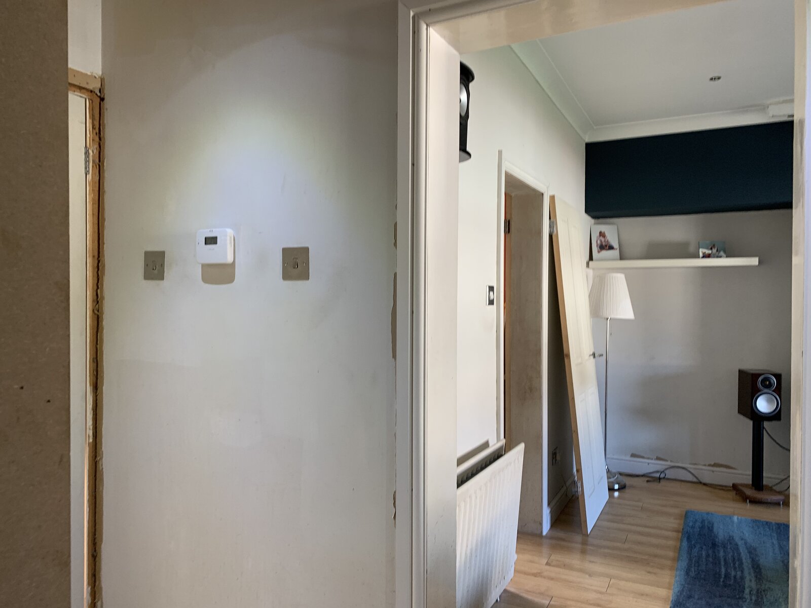 hallway with pics in order of right hand side as you walk in from stairs at front door, as above left side, and door to stairs to front door ?