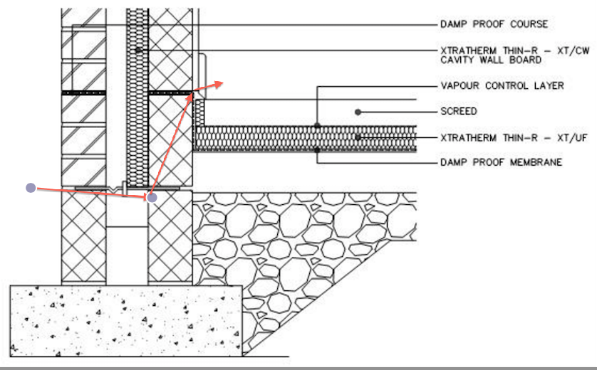 no idea why the image isnt' working, it's just a google image search for floor-wall junction detail with an arrow showing the shortest path around the insulation