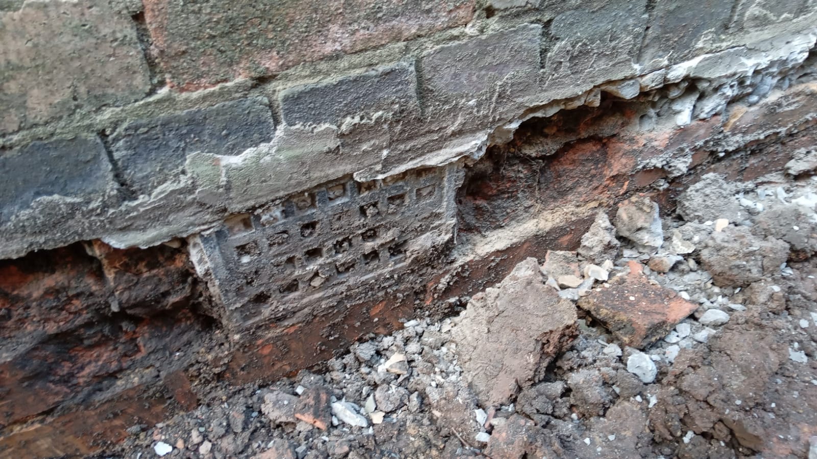 Now the course of brick below the blue is in a really poor state, so we plan on replacing this with a second course of blue.