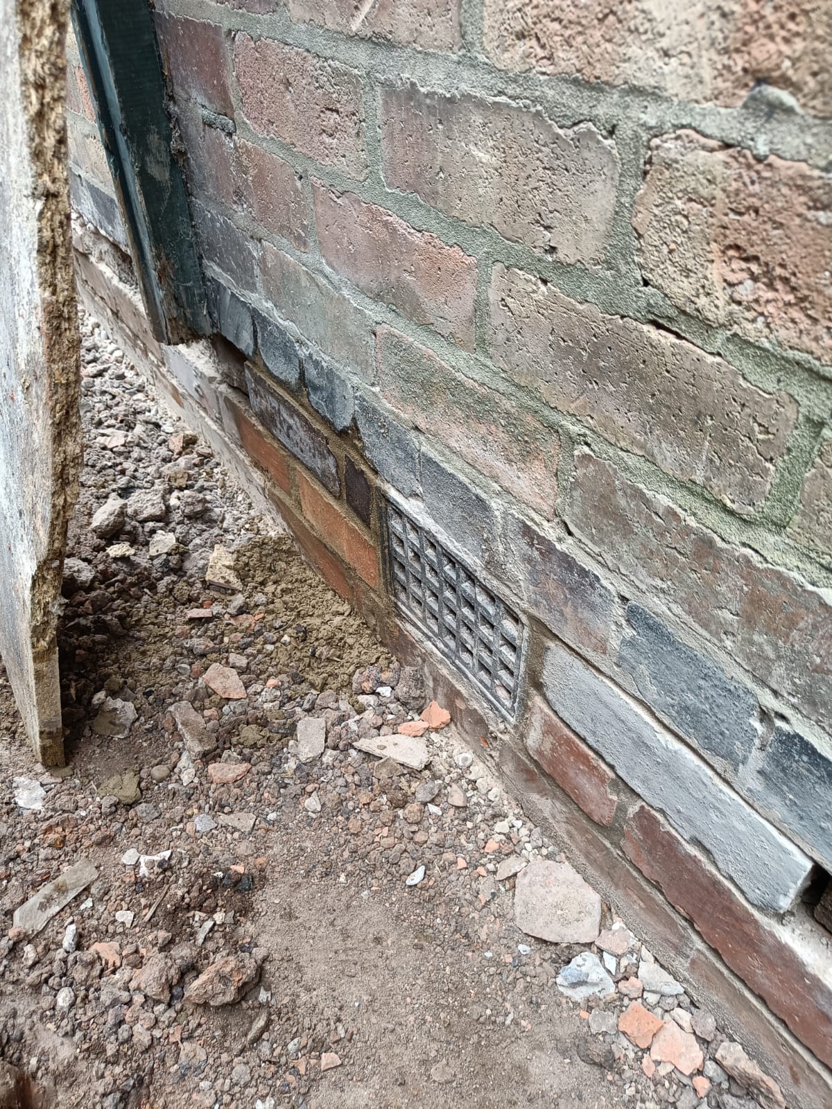 Unfortunately this level will be covered in earth again as the Electric and Gas lines run two brick courses below, but we are hoping to put drainage in.