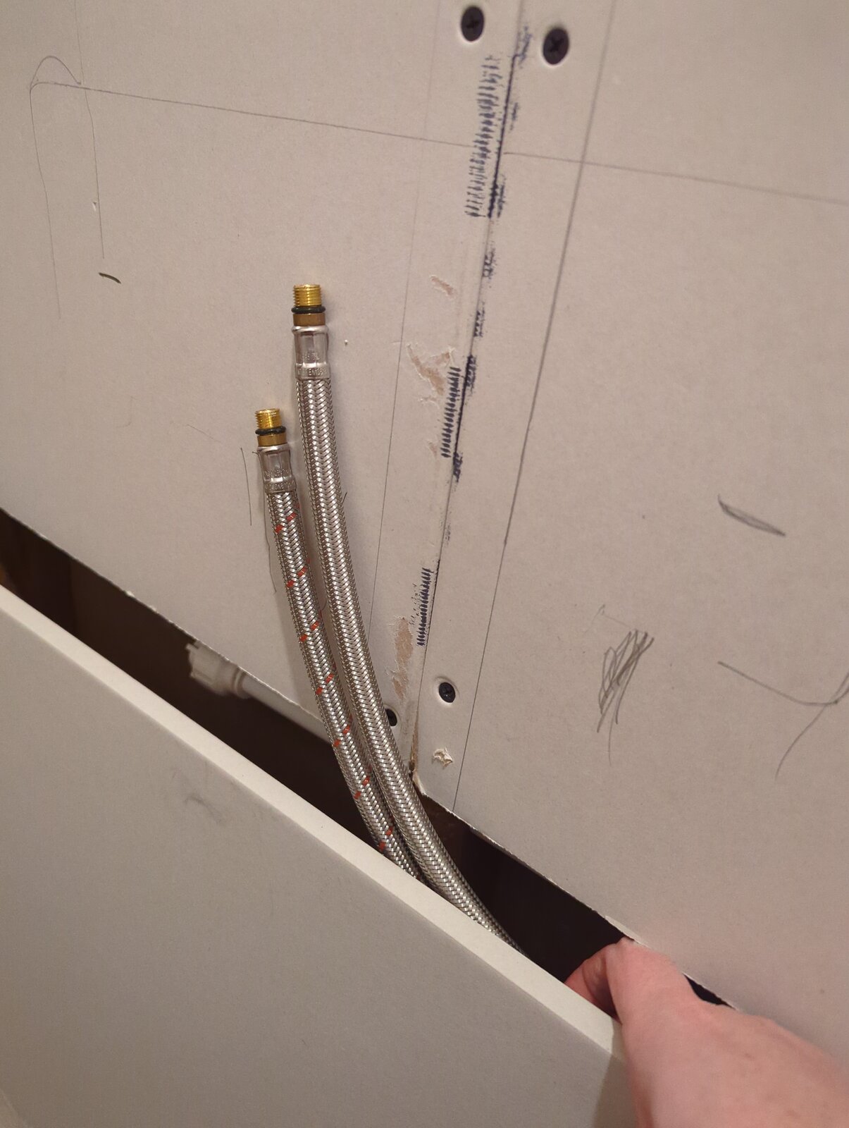 I am refitting a small cloakroom and have managed to re-route the pipework behind plaster boards for a wall mounted sink.