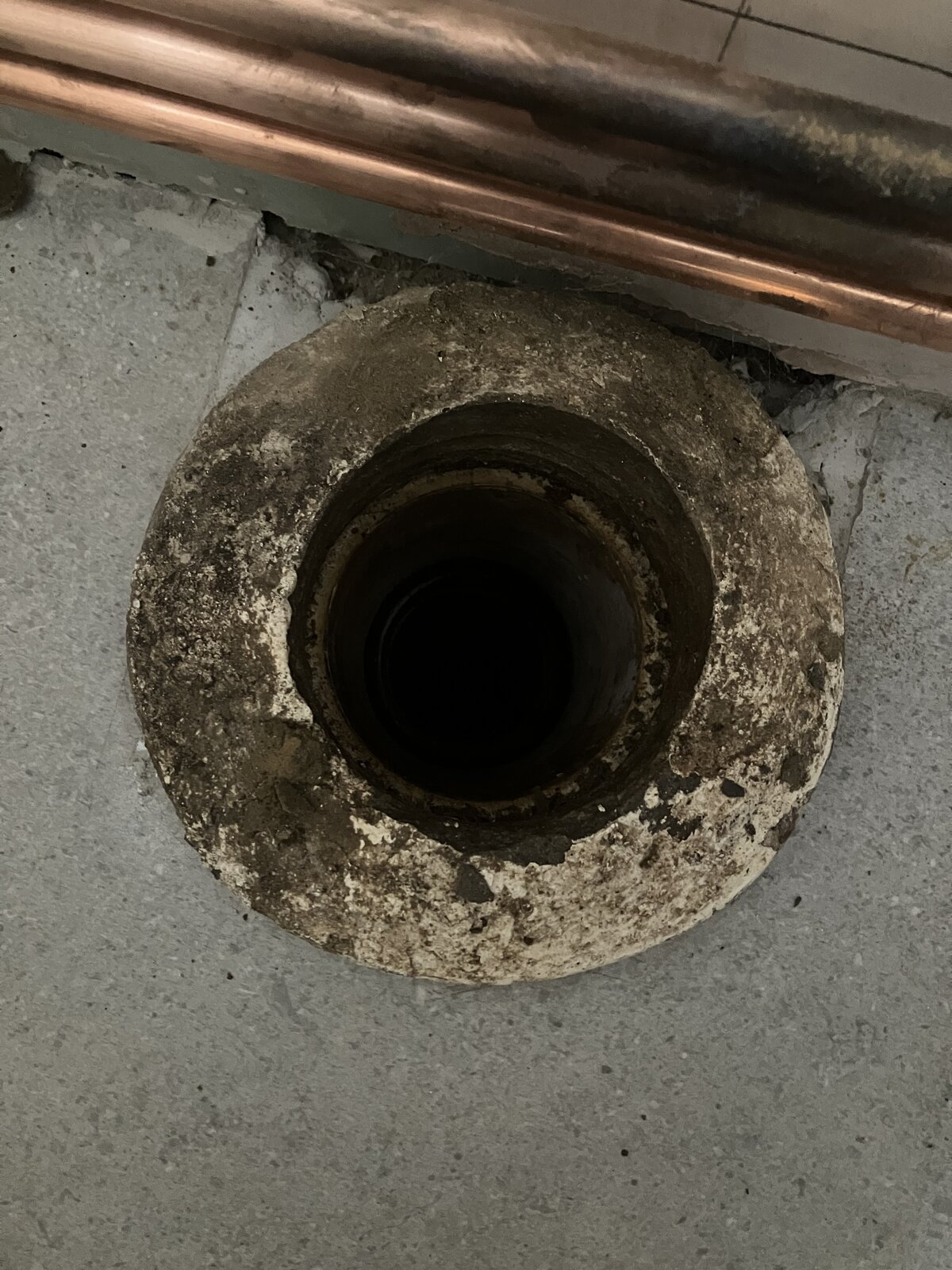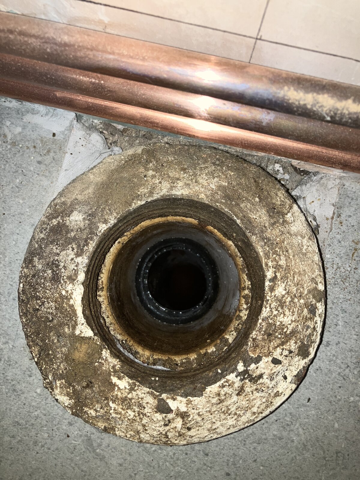 Also, if anyone can confirm what the soil pipe is made out of that would be useful. The inner bit looks like it’s glazed clay but I can’t tell if the wider collar is attached to it and if that’s also clay as it looks like a different material. Can I remove any of the collar so I can reduce the height? That seems a risky move?