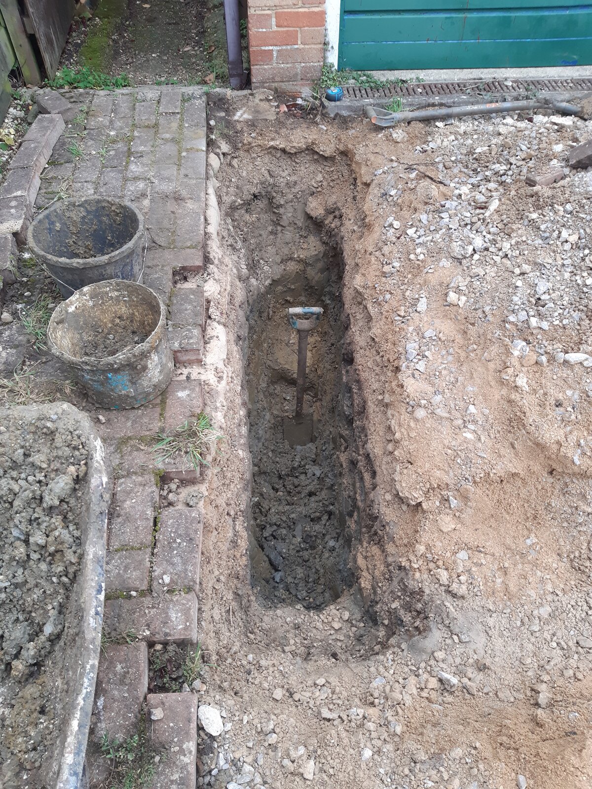 OK so we called them and they said they'd be there Monday. I dug the trench dug by hand as I didn't want the weight of the digger to mess up the block paving.
