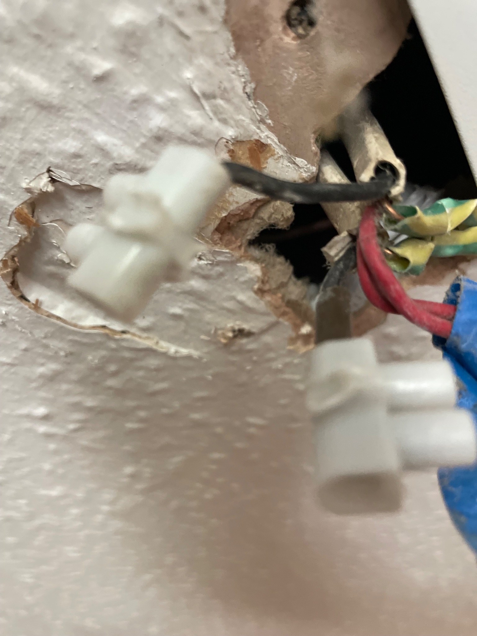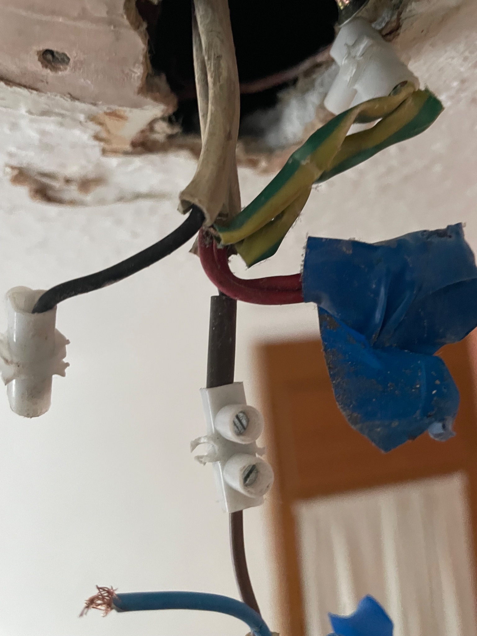 Hi everyone, I need some help fitting a new fan/light fixture to the ceiling. The fixture requires a live and neutral connection. In the ceiling where I currently have a standard light pendant connected, the wires available are the following. There is a black wire, there is a brown wire (but it seems to have previously been black but now has a short piece of brown cabling attached to it) and there is also a red wire which has been taped. There is also an earth connection (already connected to something, so isn’t available).