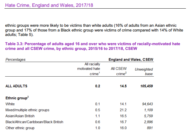 If they are truly 'racist' attacks then that must mean that the ethnic minority is 50 times more likely to commit these attacks - i.e. 20% of the population commit 10 times as many hate crimes.