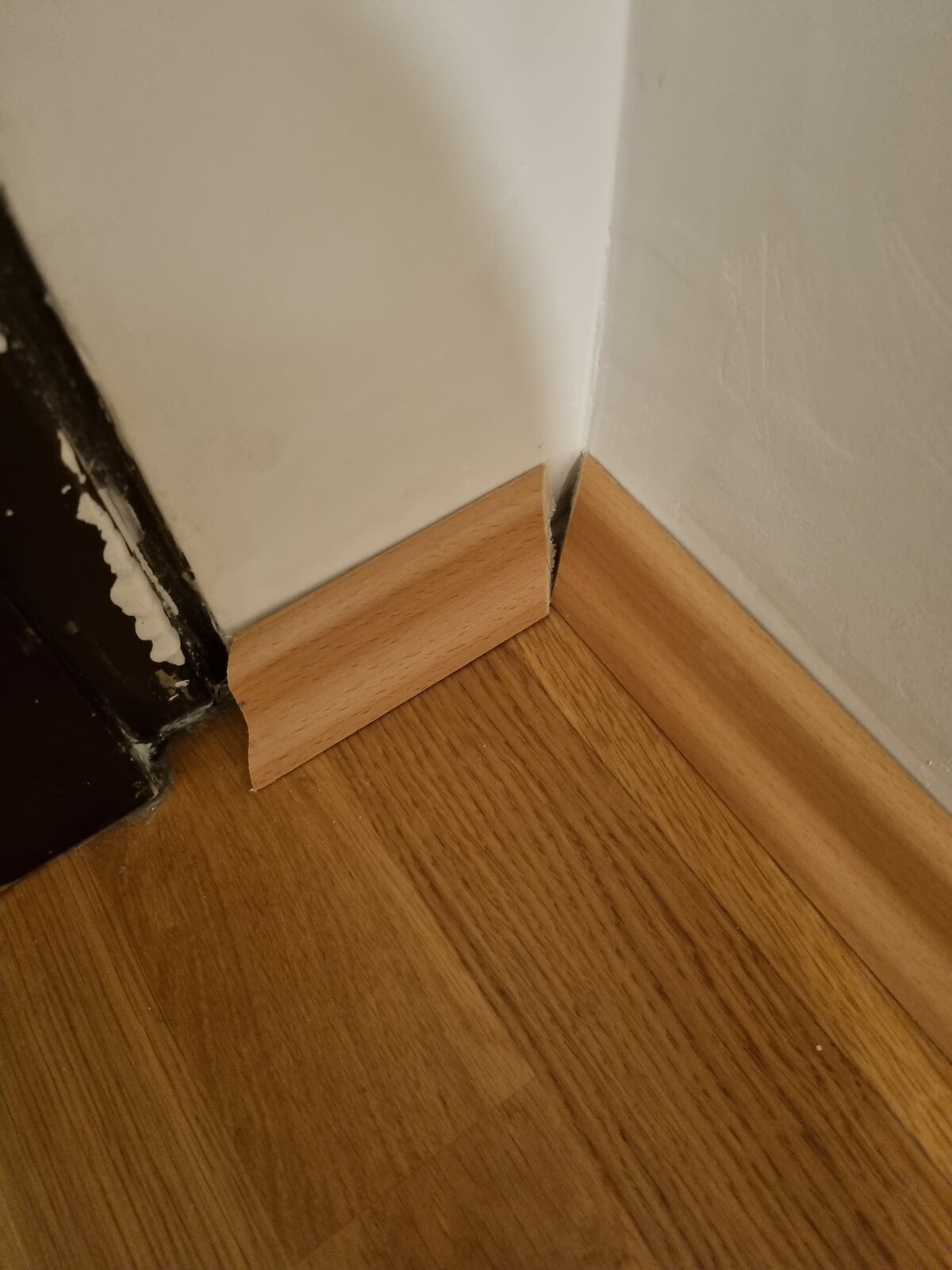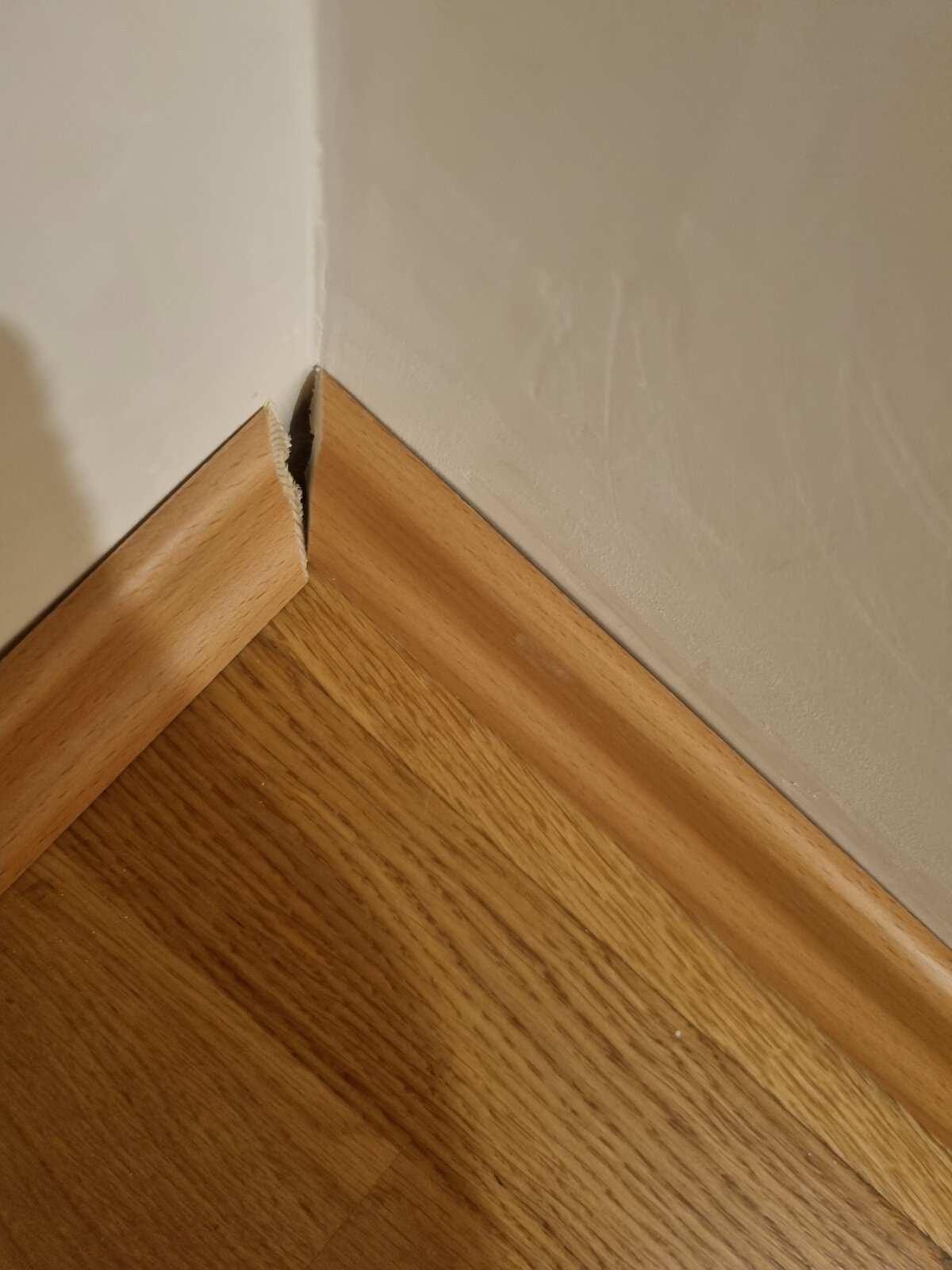 I am laying skirting board and have cut the corners to 45° using a proper pro-style angle saw device (Gärungssäge in German - not sure what they are called in English...!)