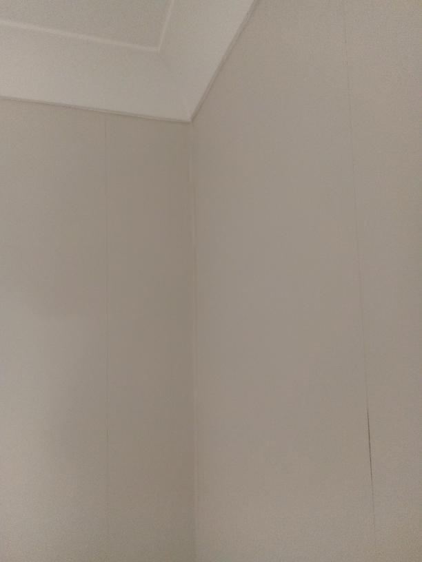 its roughly 2.5m x 2.5 meters, south facing with a large window and is the master bedroom so two adults sleep in there. Originally I stripped back, filled, rubbed down the walls and ceiling. I put up coving all around and then lined the walls and ceiling. I caulked all the edges and put two coats of white ceiling paint on the coving and celing and some natural dulux paint on the walls.