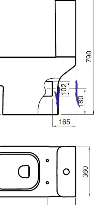 The current soil pipe centre is 130mm from the back wall, and 180mm to the end of the soil pipe from the wall. Looking at the measurements for this toilet, it’s around 150mm from where the back wall will be to the toilet (purple lines) covering the soil pipe?