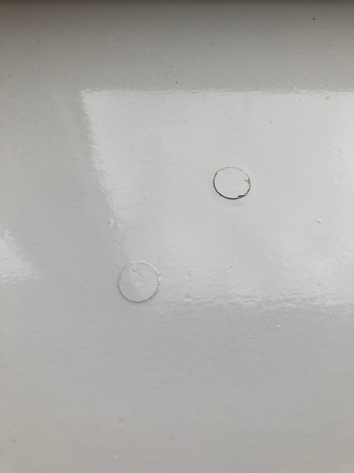 I am guessing these are one of two things, either a nail head that's popped out (looks a bit big for a nail head) or a cover for a screw fixing underneath.