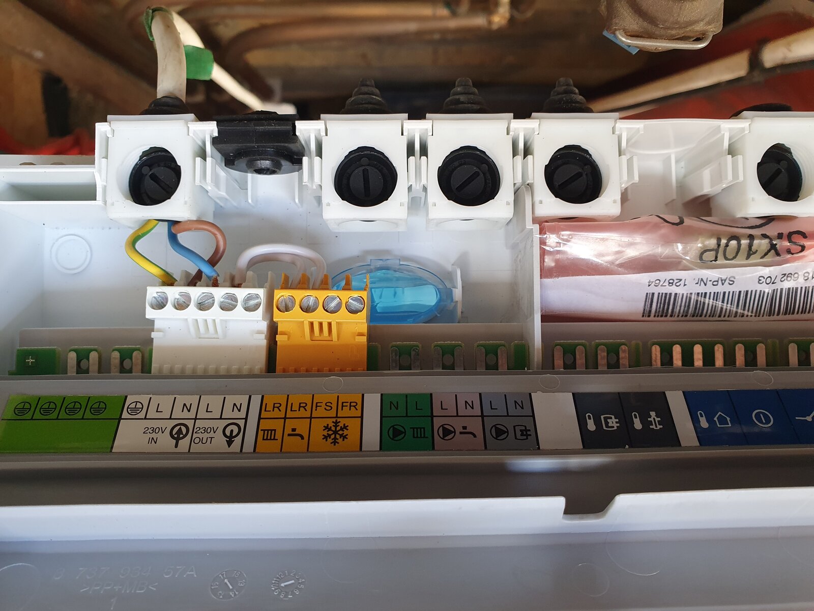 Before I get someone round to fix, I wanted to ask here as can only presume that a connection is missing/incorrect, given we had heating previously. The old wired Honeywell thermostat looks like it has not been reconnected post the boiler move. Having looked through the manual I can't find an obvious answer as to where the connections for this should go.
