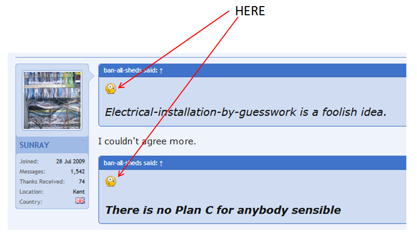 I have the ability to design, wire and fault find on all sorts of circuits, some of which are a hell of a lot more complicated than a simple domestic 2 way light circuit.You couldn't agree more with what? If you read my post you will see I have agreed with YOUR statement that guesswork and electrics do not mix. The falsified "Er... what?" smilies in the 'quotes' you posted? I have falsified or added nothing, merely not included your Plan A, Plan B and the next paragraph.