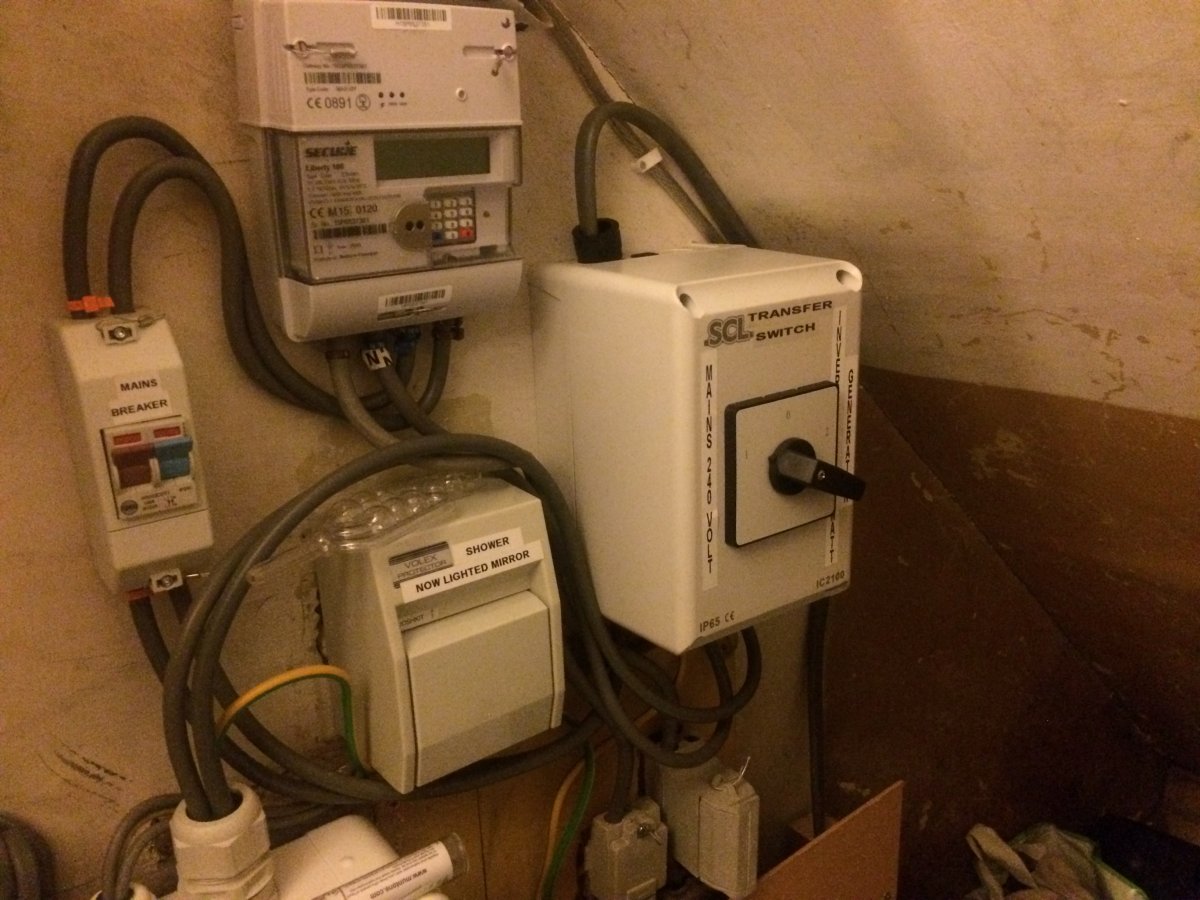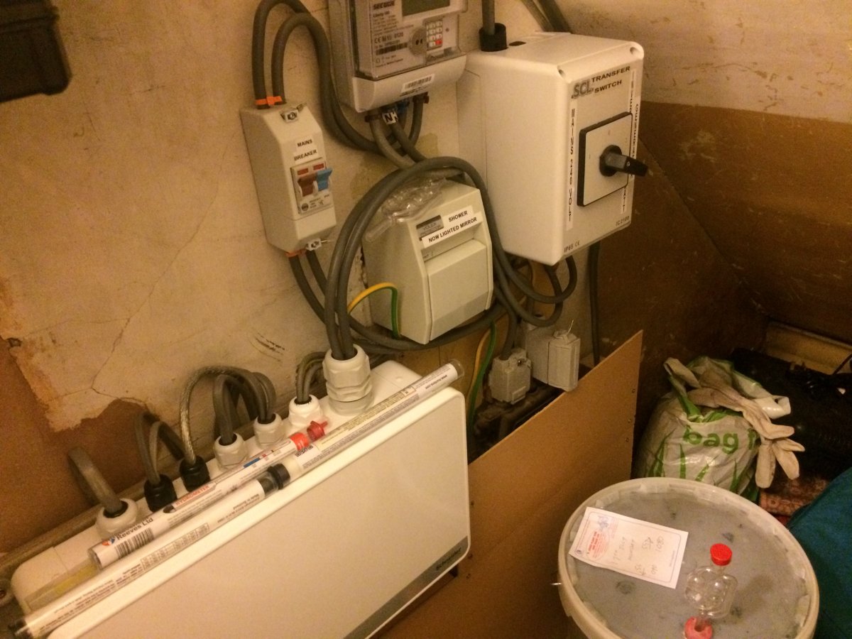 i have had a full off grid set up installed long story but anyhow to put it shortly from my inverter is a new consumer next to it in my garage with 10mm2 cable going into my house into a 100amp manual transfer switch fitted after a 100 main switch so it makes it safe. If we have a power cut its just turn main switch off and then turn transfer from position 1 to 3 where the inverter is wired into and goes into my other new schneider consumer which was installed last year BUT the inverter trips everytime and if i set the rcd again it trips the one in the garage.the inverter is wired into the original garage consumer as the inverter as a 90amp charger built in but its turned off at the breaker and is only turned on when not inverting also the inverter as 2.4m of copper grounding rods.The sparky who wired the inverter had to go work in saudi so i cant call him back,also note if i wire a socket directly from the inverter it powers my washer,dryer,kettle no problem at all but i like the idea of using my house consumer