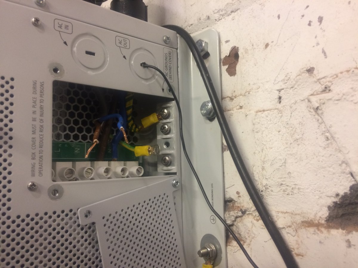 the charger is fed via a SP breaker 30amp but as the inverter as got pass through BUT if the power goes it will go straight to battery's,which is no good for the person trying to fix the problem on the street so i only ever turn on to charge my batterys BUT i turn off the invert fuction as it will go into tragic circle