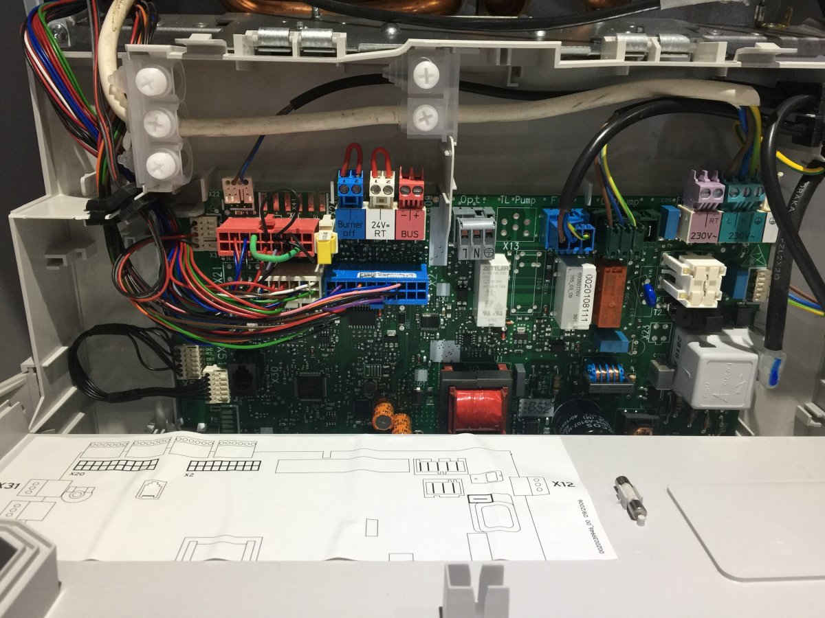 The heatlink connects upto 230V L/N/E, however which should the 2 call for heat wires go? Is it the 24V RT or the 230V RT?