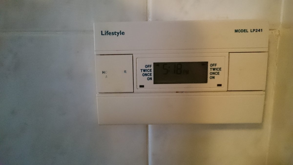 So, the current situation is as follows, My Kitchen 7day programmer currently calls for heat and water when I press a button or during certain times during the day. I have a Programmable Thermostat that I would like to use in order to be more efficient and have better control.