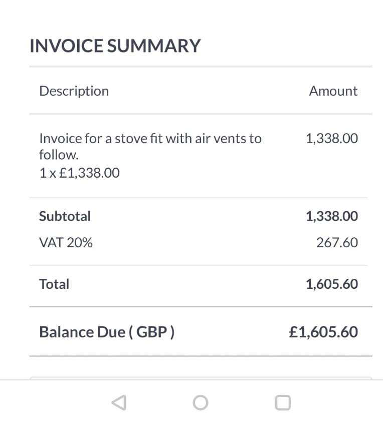 B., the installer, fitted the stove one year ago. He was supposed to come back the next day after spending 5 hours at the property for the installation. He never did. I have contacted him again but I haven't heard back from him yet.