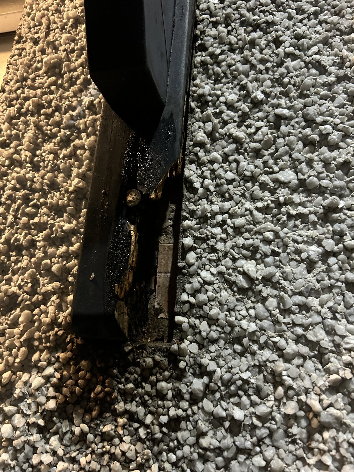 The Canopy is partially sunk into the render and I’ve already noticed a small bit of the render has crumbled off, I anticipate when removing the wood some of the render may come away. Any advice on the best way to go about this and touching up the render around it.