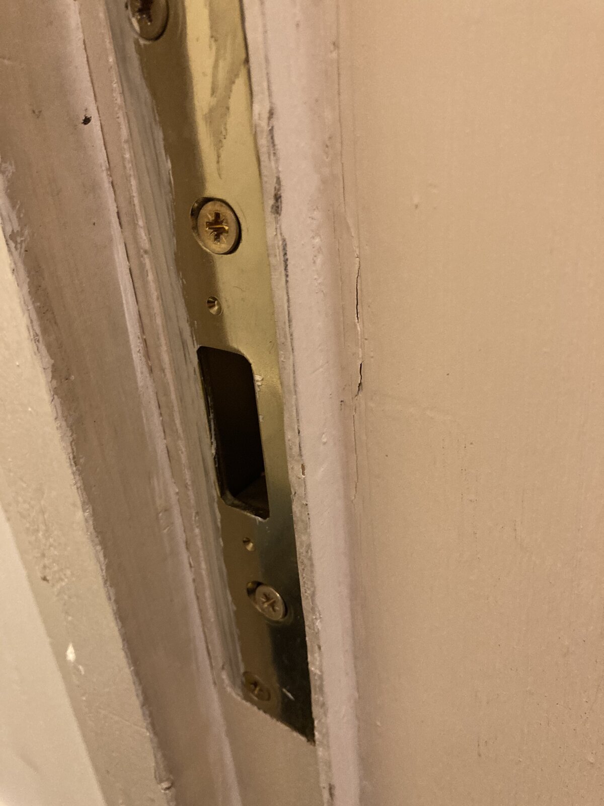 I have a wooden door that is no longer locking. Both the latch and the main lock don’t align, which suggests it’s a problem with the door itself rather than the individual locks. The only way to get it to lock is to push the door upwards by 1mm while turning the key and, with some significant difficulty, it does lock.