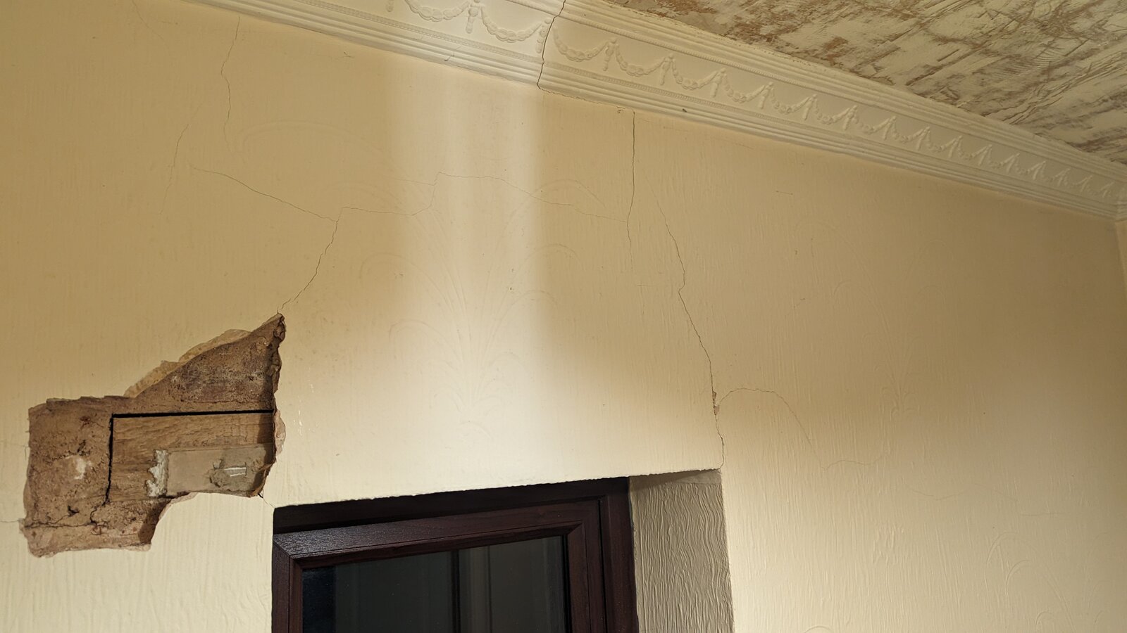 The walls and ceiling of the hall upstairs and downstairs is artex (asbestos free) and in prep for getting the walls and ceiling skimmed over I decided to remove the artex freom the ceilings as it was in bad shape and cracked/peeling in places. This lead me to find a fair sized (3mm wide and tapering down) crack in the ceiling which they had just covered up before artexing. This I am not too concerned about but it did get me to thinking more about the various cracks around a window in the exterior wall opposite - I had them down as just expansion cracks due to house being empty cold and damp - no idea how long they actually have been there.