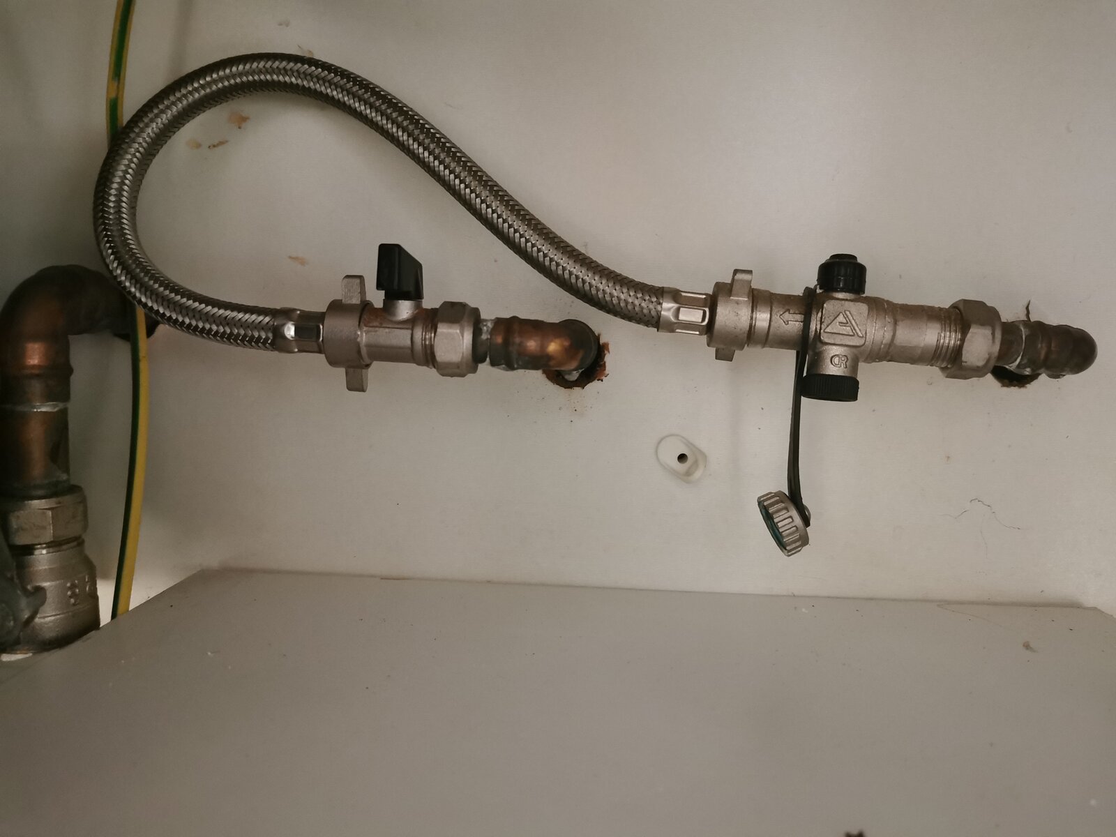 I had to bleed one of our radiators last night due to it not getting warm for a while (and making a water rushing noise). After I did, when switching the heating back on the boiler pressure is at zero in the red, then the flow temperature on the screen goes from 25 degrees c to 99 degrees c in less than a minute so I switched it back off. Theres 2 ways i've seen to top up the pressure, one is from the black plastic manifold and key under the boiler which mine does not have, and the other is via a hose. I looked under my sink and this is not far from my boiler, could this be the hose which you need to use to allow cold water into the system to re-pressurise it? Or is this not related to it at all and some type of gas pipe which I should not be messing around with. Also, the heat going from 25 degrees c to 99 so quickley, is that supposed to happen when the pressure has been lost?