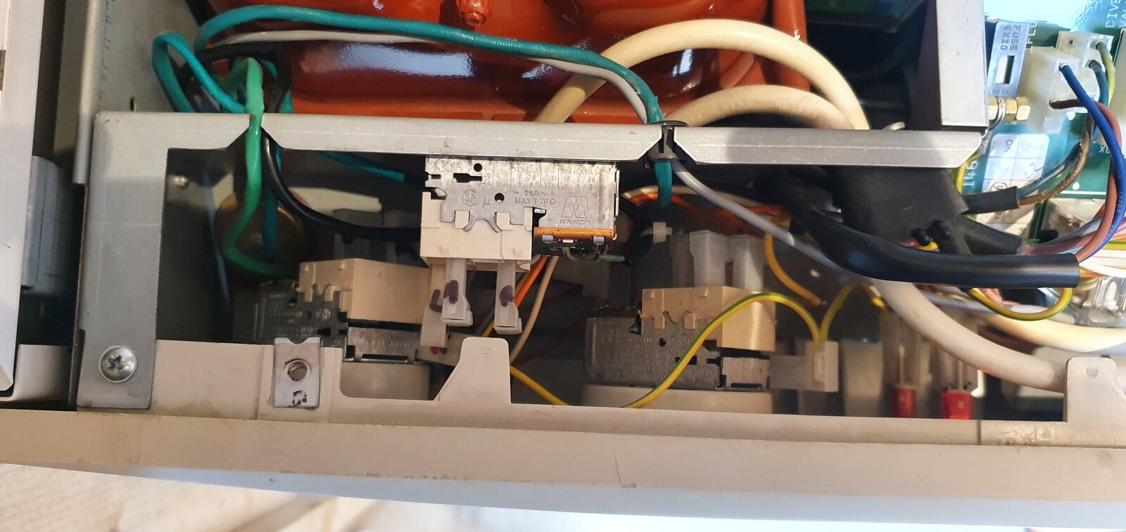 I have a Worcester Greenstar Heatslave 12/18 oil boiler which stopped heating domestic hot water or central heating hot water today. The pump is running when the controller is set to either HW or CH but the boiler isn't firing up. When it first happened this morning the pump was red hot, couldn't touch it and have had this problem before, about 6 months ago. Then it cost us about £600! The engineer changed the pump, etc and then changed the DHW thermostat and that seemed to resolve it. I don't really want to call them out again (another £600 later!) when I am comfortable is changing the stats and thermocouples (if that is the problem) but having looking inside the control unit there appears to be at least thermostatic units (DHW and CH, attached to control knobs and one, with a thermocouple but no control knob - see photo).