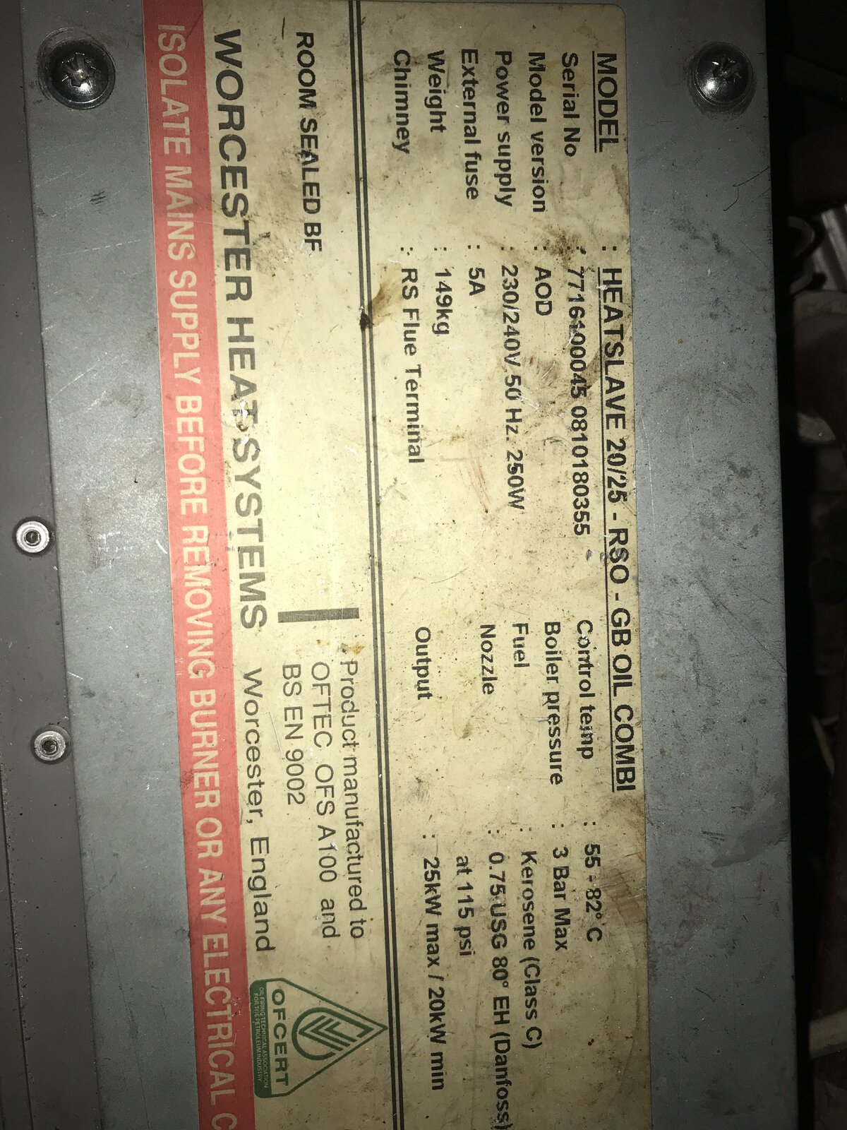 Recently had a new oil tank installed for my Worcester oil burner.
