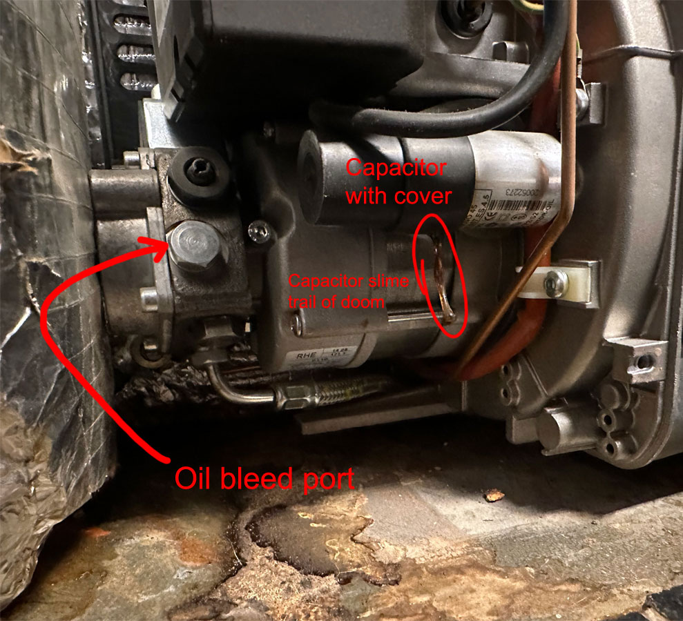 Then I noticed what should have been obvious from the start... a massive string of capacitor fluid coming out of the capacitor cover.