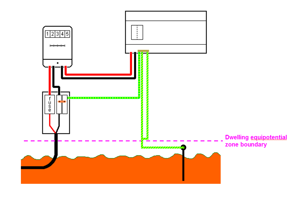 Provided the rising earth does not penetrate the equipotential zone of a flat then that is OK. If however the rising earth does penetrate the equipotential zone of a flat then is has to be considered as an extraneous conductor and would therefore need to be bonded to the MET.