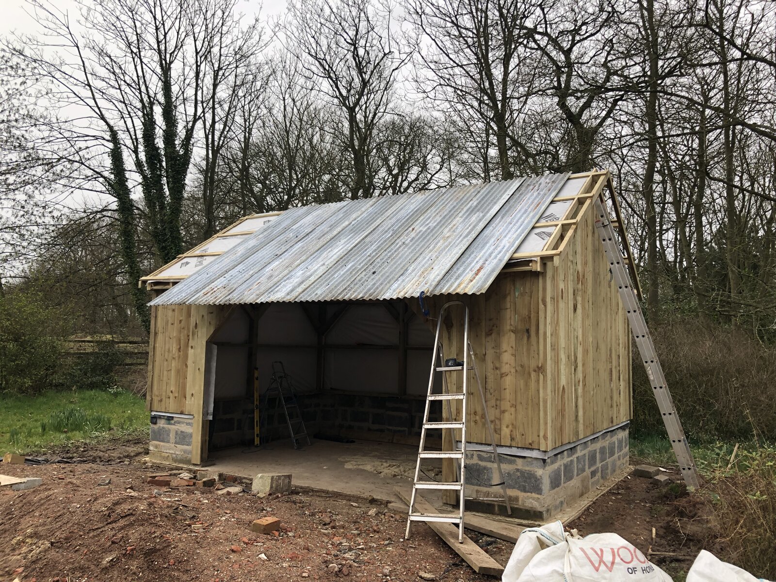 Woodwork is impressive , disappointed with the tin roof though , wondered why so few battens . What is planned for the huge door opening , too wide for two doors surely , do you intend to insulate roof and walls ?