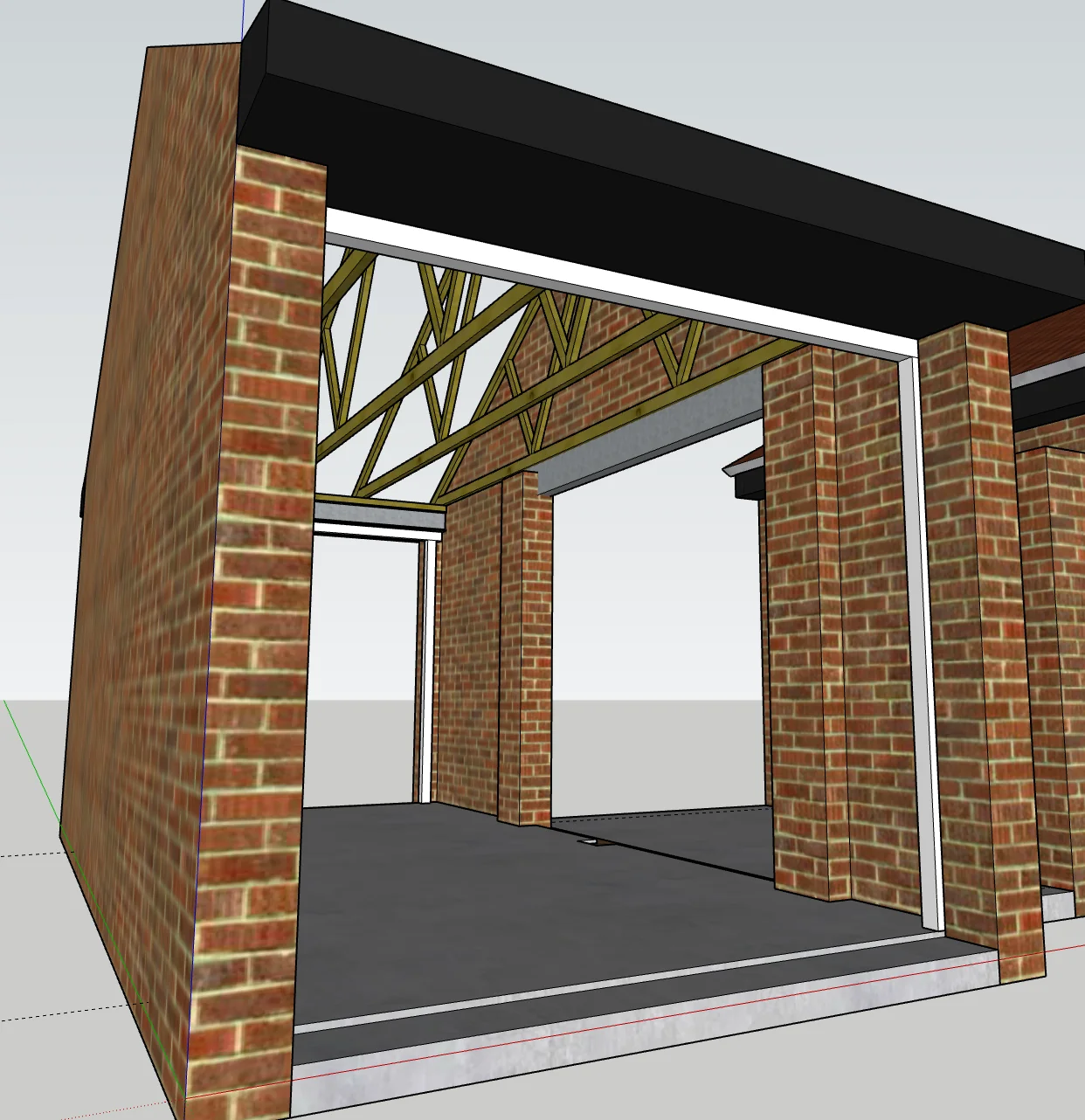 The total wall length is 5.5m, and the opening would be about 2.4m and 1.1m from the corner. Would a steel lintel and brick piers either side of the opening be sufficient?