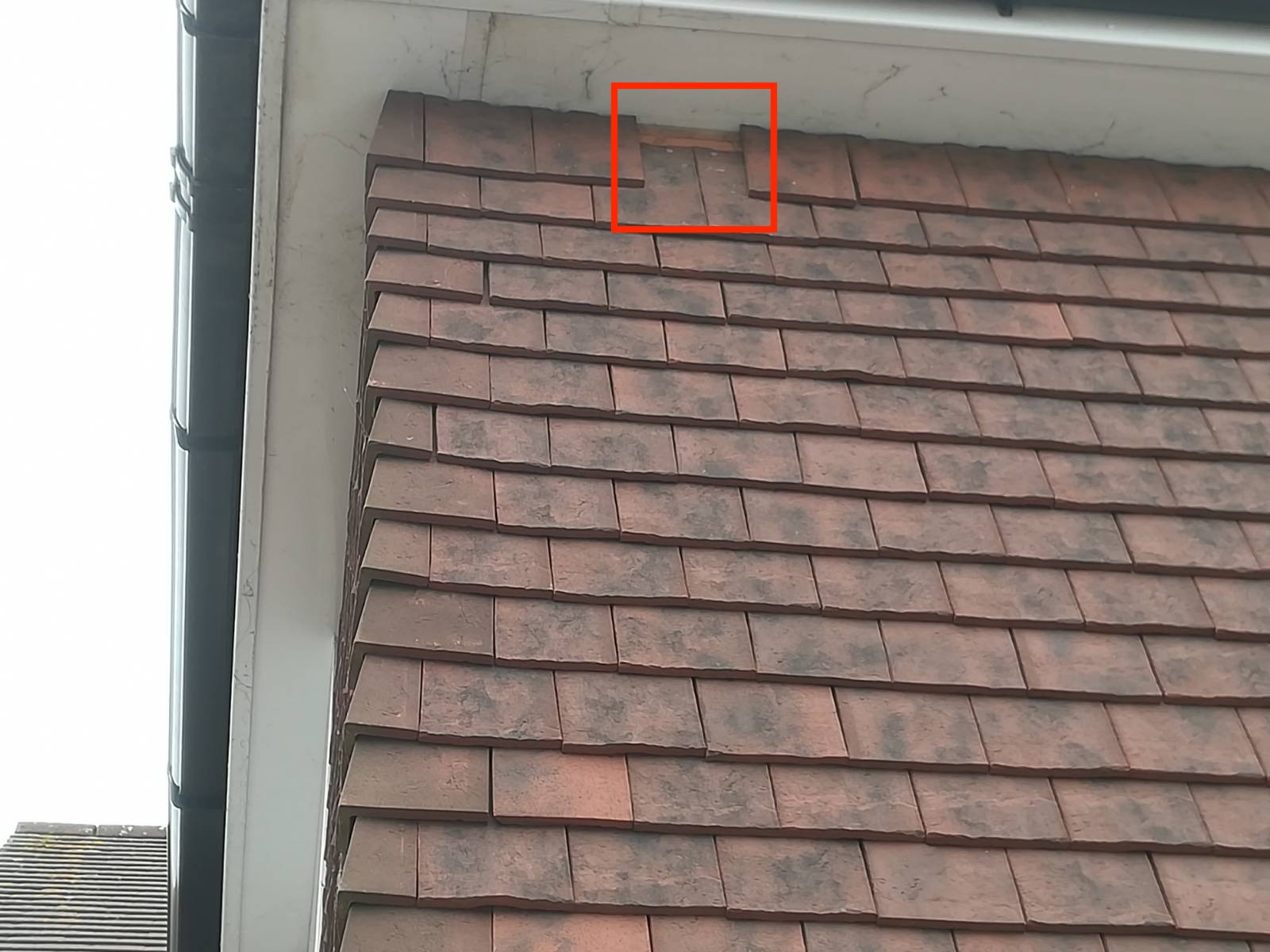 Noticed it fell off this morning. Also, not sure if the tile to the right is dislodged by the missing one/storm Eunice or just misaligned when it was put on.