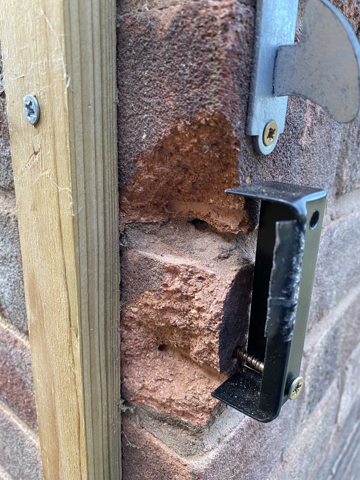 Hi all - in the process of putting the rim deadlock keep on the wall for the garden gate, the brickwork has crumbled away (see photos!)