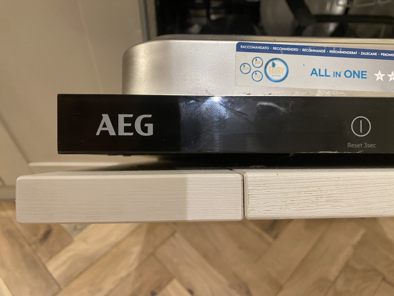 One of the screws has come loose on our Wren/AEG integrated dishwasher door so I need to get the door off to rescrew it in, but can’t figure out how to get the door off.