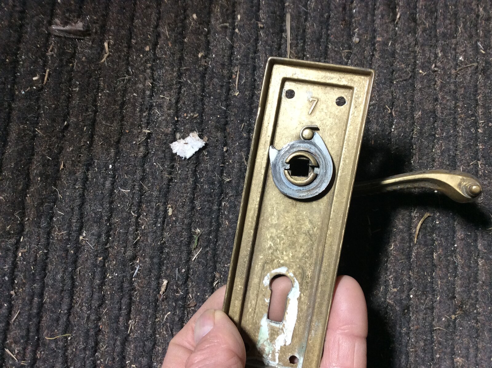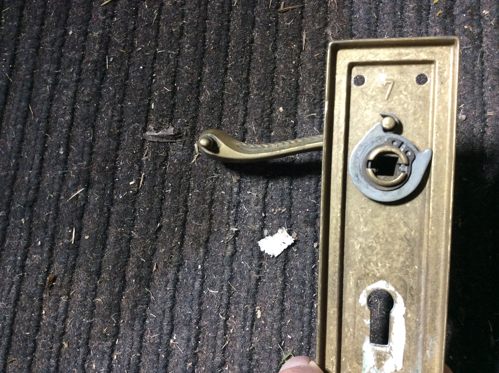 Some door handles have a small hole allowing a thing like a golf tee to be inserted and the “side” changed.