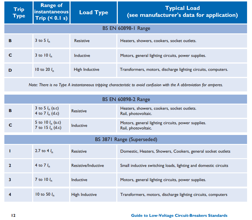 As you will see from the table, type 1 (type B nowadays) is normally used for showers.