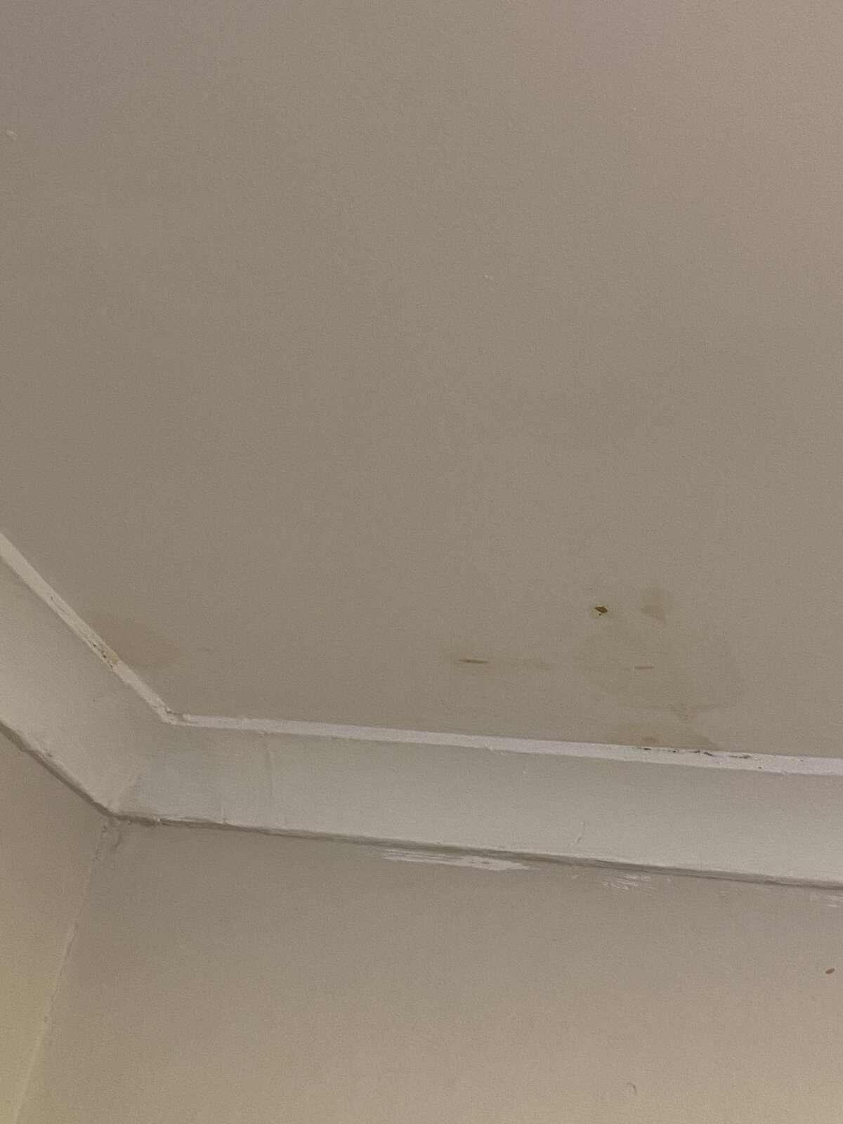 There’s no pipes or leak, so I’m wondering if it could be contaminates on the original boarded (painted) surface bleeding through?