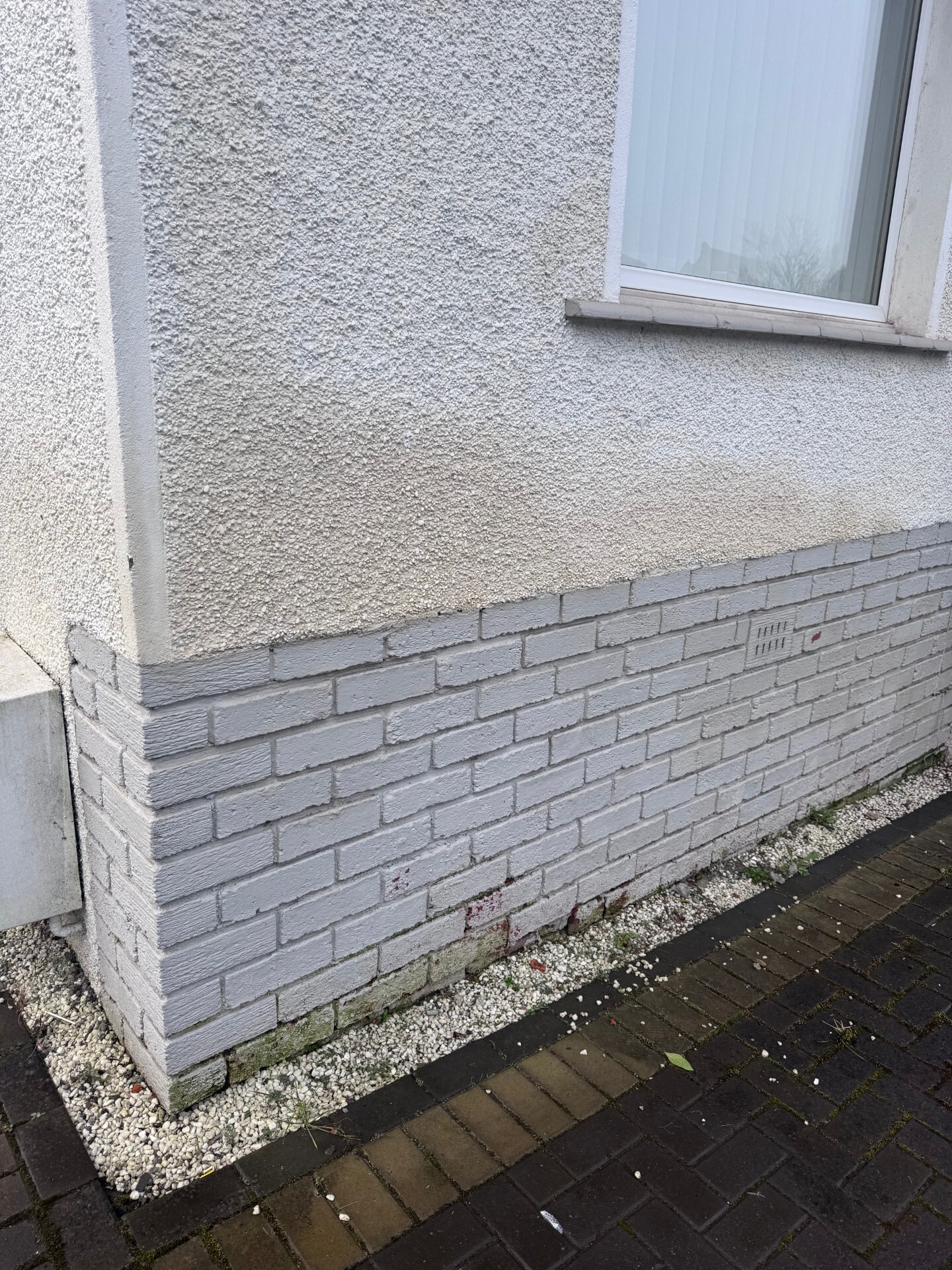 Any ideas on what it might be and how to fix it would be really appreciated. I’m guessing if I just paint over it again with white masonry paint the yellow will probably come back, so I’d rather fix the root cause first.