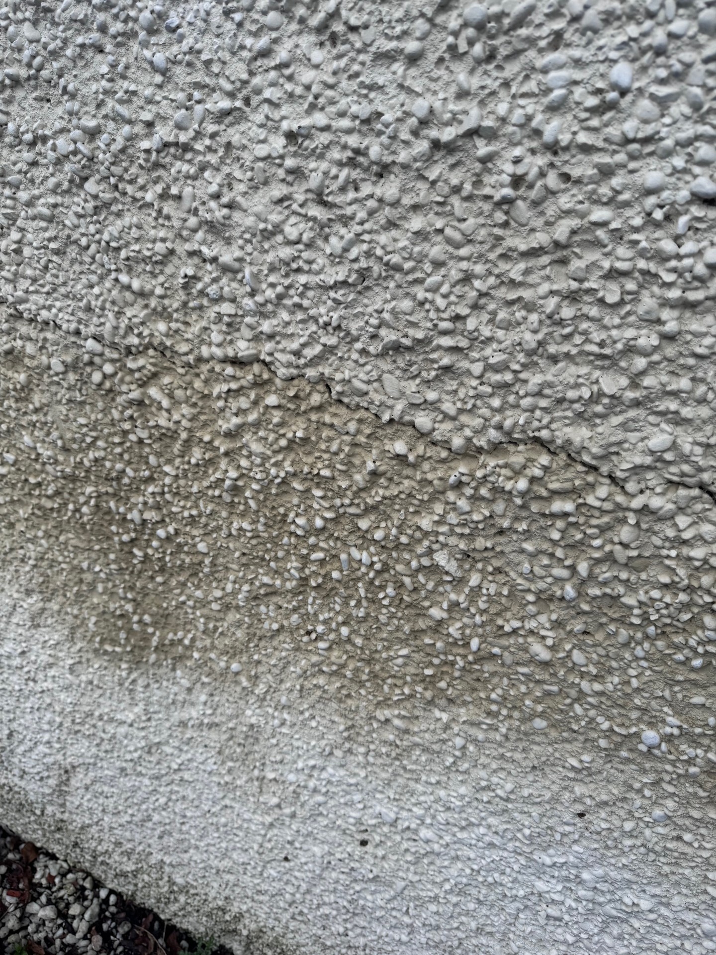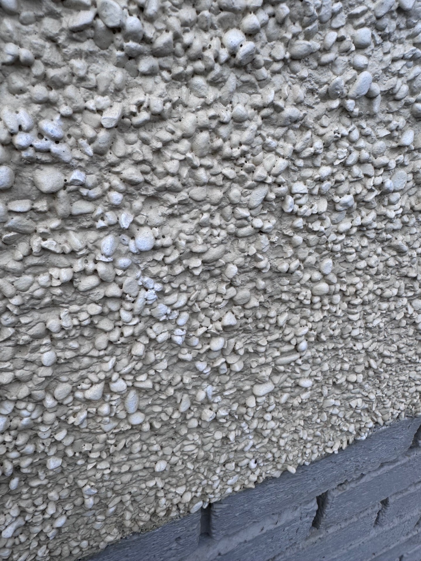 We had the outside of our house painted with white masonry paint, and the bottom half of the bricks painted grey. After a little while, some areas of the white paint started to turn yellow. I think the yellow might also be appearing on the grey bricks, but it’s harder to see there.
