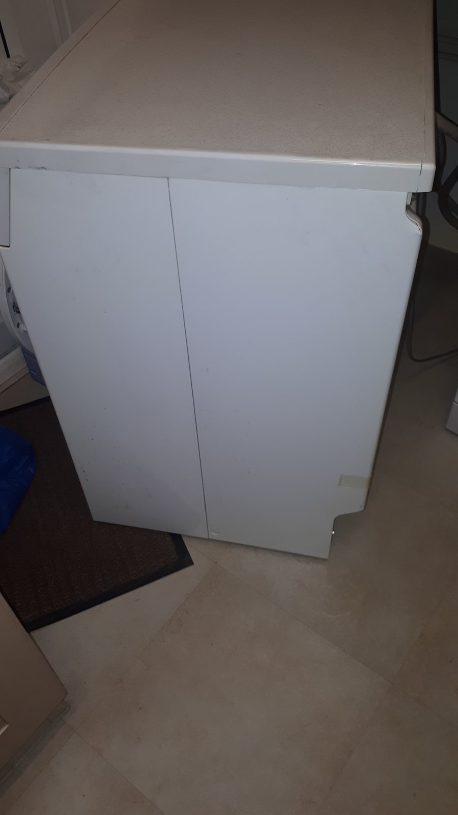 You can take the top off and there is a small access point underneath but the back doesnt come off. Given that these new belts are a tight fit it sounds like an almost impossible job. I found a video on espares but on that machine there was an access hole at the back at the bottom where the motor spindle is. I can't see that on mine.