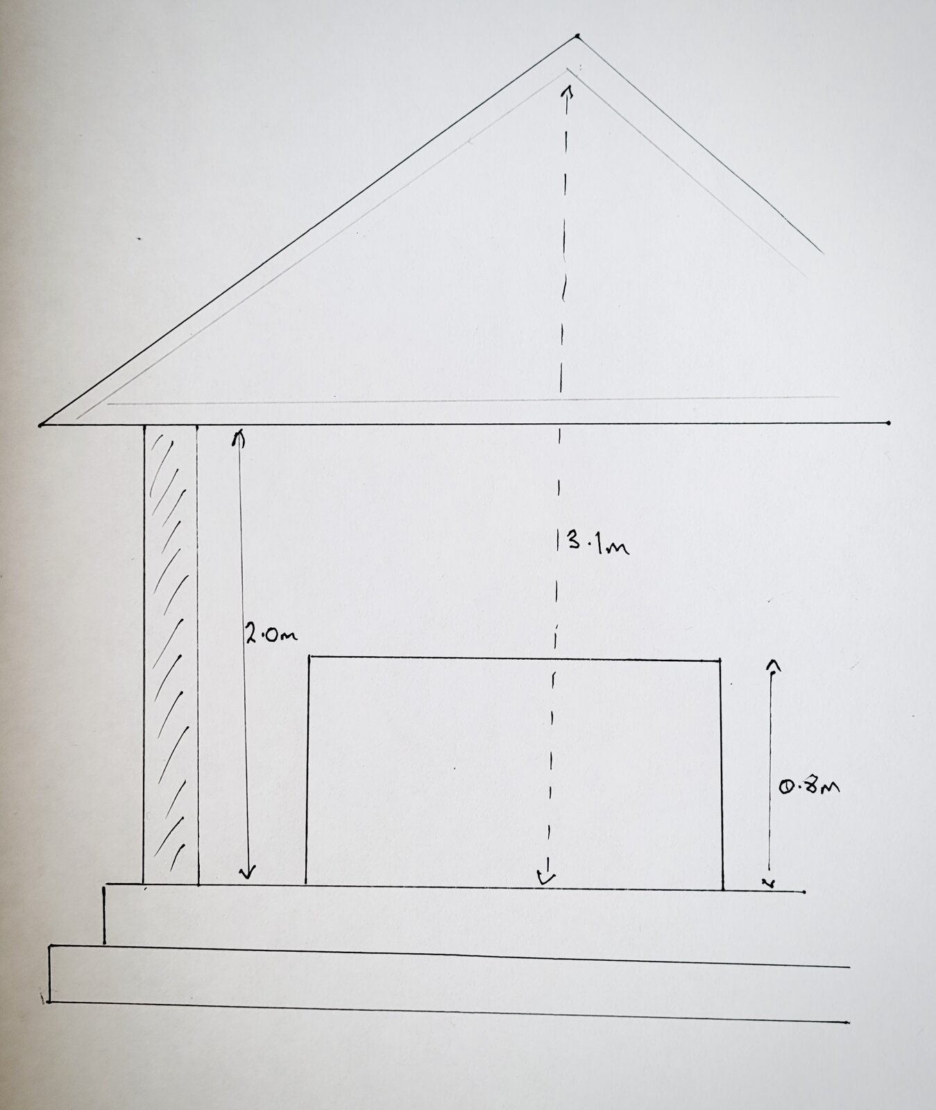 I had been intending to install 2m above any point above Hot Tub … so at apex of pitched rafters.